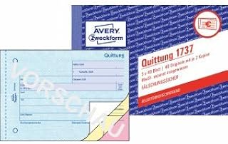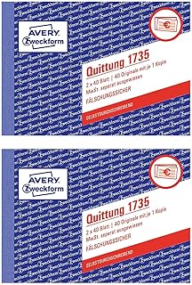 AVERY Zweckform 20 x Formularbuch Quittung A6 quer selbstdurchschreibend VE=2x40 Blatt