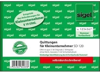 Sigel 5 x Formularbuch Quittung A6 quer ohne MwSt. Ausweis SD VE=2x30 Blatt nummeriert