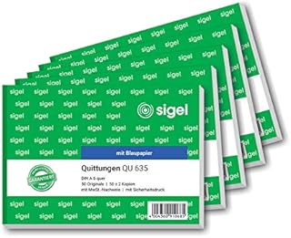 Sigel QU635 Quittung mit Sicherheitsdruck und Blaupapier, A6 quer, 3x50Blatt, 5er Pack