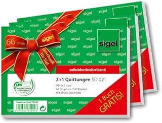 Sigel T1148 Aktion: 3 Quittungen 2fach SD021: 2 Stück + 1 gratis, A6 quer, 2x40 Blatt, 1. und 2. Blatt bedruckt mit Sicherheitsdruck, SD