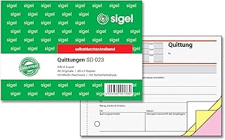 Sigel SD023 Quittung mit Sicherheitsdruck, A6 quer, 3x40Blatt, selbstdurchschreibend, 10er Pack, SD023/5