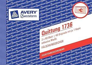 Avery Zweckform Quittung (A6 quer, MwSt. separat ausgewiesen, 2x40 Blatt) weiß/gelb (10 Stück)