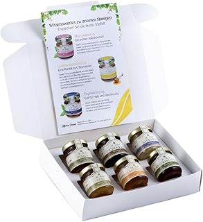 Honig Geschenk-Set "Regional" - 6 Honige aus der Region - Heide-Honig, Himbeerblüten-Honig, Linden-Honig, Raps-Honig, Tannen-Honig, Sanddorn-Honig (6 x 50g)