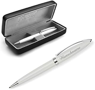 polar-effekt Kugelschreiber Schreibset Alphabet mit Gravur - Farbe weiß - Drehkugelschreiber und Rollerball schwarzschreibend - mit Geschenk-Etui