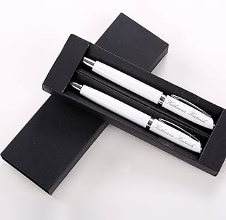 polar-effekt Charles Dickens Metall Kugelschreiber Sheffield - Farbe weiß - Eleganter Drehfunktion mit Gravur - Geschenkidee zum Geburtstag - Geschenk-Etui aus PU-Leder