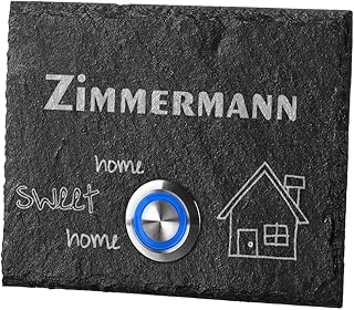 polar-effekt Personalisierte Türklingel aus Schiefer - 100x80 mm Klingelschild mit Gravur - Klingelknopf BLAU - Klingelplatte Geschenk zum Einzug [mit Edelstahlklammer] Motiv: Home Sweet Home