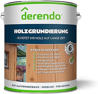 Derendo Holzgrund farblos 2,5 L, Holzgrundierung mit 6-fach Schutz, Holz-Imprägnierung für Außen (2,5L, farblos)