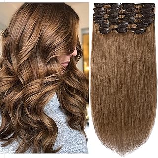 Clip in Extensions Echthaar günstig Haarverlängerung Remy Echthaar 8 Tressen 18 Clips Glatt 50cm-105g(Mittelbraun)