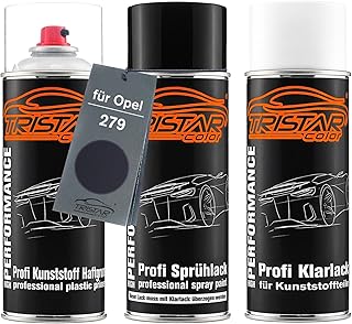 TRISTARcolor Autolack Spraydosen Set für Kunststoff Stoßstange für Opel 20R Saphirschwarz Metallic/Black Sapphire Metallic Haftgrund Basislack Klarlack mit Weichmacher Sprühdose