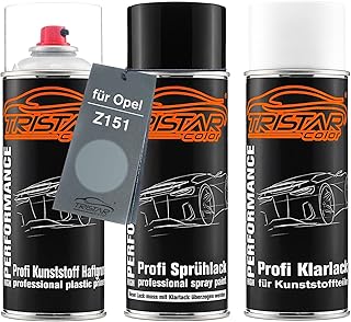 TRISTARcolor Autolack Spraydosen Set für Kunststoff Stoßstange für Opel Z151 Mirage Metallic Haftgrund Basislack Klarlack mit Weichmacher Sprühdose