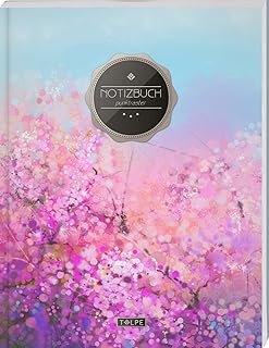 TULPE Punktraster Notizbuch A4 „C080 Rosa Blumen“ (140+ Seiten, Vintage Softcover, Punktkariertes Papier - Bullet Journal, Dickes Notizheft, ... Gepunktete Seiten, Dot Grid Notebook)