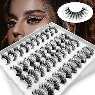 Yuejiancaos 10 Paar 5D Nerz Wimpern Dramatische Erscheinung Falsche Wimpern, Flauschige Falsche Wimpern Kleine Reihe Von Natürlichen Wimpern Make-Up Lange Hand Weiche Wimpern(5D-07)