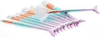 Make-up-Pinsel mit Meerjungfrauenschwanz-Griff, Set mit 10 Synthetik-Pinseln, Kabuki, Foundation, Blending, Blush, Eyeliner, Puder, von Dolovemk