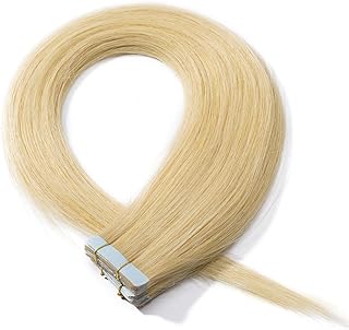 Tape Extensions Echthaar Remy Haarverlängerung Tape in Klebeband Haar Extensions Glatt Haarverdichtung 20 Pcs x 4 cm breit 50g-55 cm #60 Weißblond