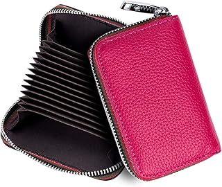 Echt Leder Kreditkartenetui für Damen,RFID Schutz Scheckkarten 13 Fächer Kartenetui Visitenkartenetui Mit Reißverschlussetui