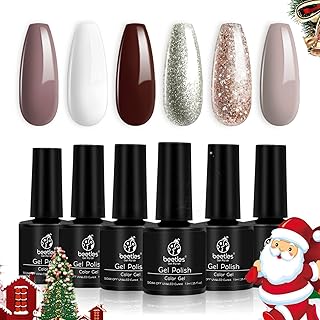Beetles Holiday Gel-Nagellack-Set – 6 Farben Burgandy Rot Champagner Gold Glitter Gel Polish Snow White Nude Grey Nail Gel Polish Soak Off UV Nail Lamp Gel Nail Kit Vanish Manicure Kit DIY zu Hause