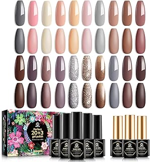 MEFA Gel Nagellack Set 20 Farben, Braun Gel Nagellack Nude Gellack Soak Off LED Nagelgel für Pink Gel Nail Polish Starter Nail Art Kit, Glänzend & Matt Top Base Coat Geschenkbox