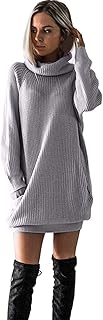 HHWY Pullover Damen Langarm Elegant Rollkragen Winter Warm Winterkleid Einfarbig Stricken Lässig Lose Minikleid Strickkleid Damen Sweatshirt Damen Oversized Blusenkleid Pullover Kleid Mit Taschen