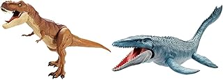 Mattel FMM63 - Jurassic World Dinosaurier Spielzeug Riesendino Tyrannosaurus Rex, riesiger T-Rex Dinosaurier, ca. 90 cm & Jurassic World Dinosaurier Spielzeug Mosasaurus mit real Feel Dinohaut
