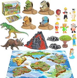 OBEST Dinosaurier Spielzeug Set, 22pcs Groß Dinosaurier Figuren mit Aktivität Spielmatten und Bäume, Realistische Jurassic World T-Rex, Triceratops, Velociraptor Spielzeug Groß für Kinder