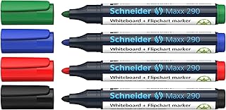 Schneider Maxx 290 Marker Set (Für Whiteboards und Flipcharts, Strichstärke: 2-3 mm) 4er Etui schwarz, rot, blau, grün